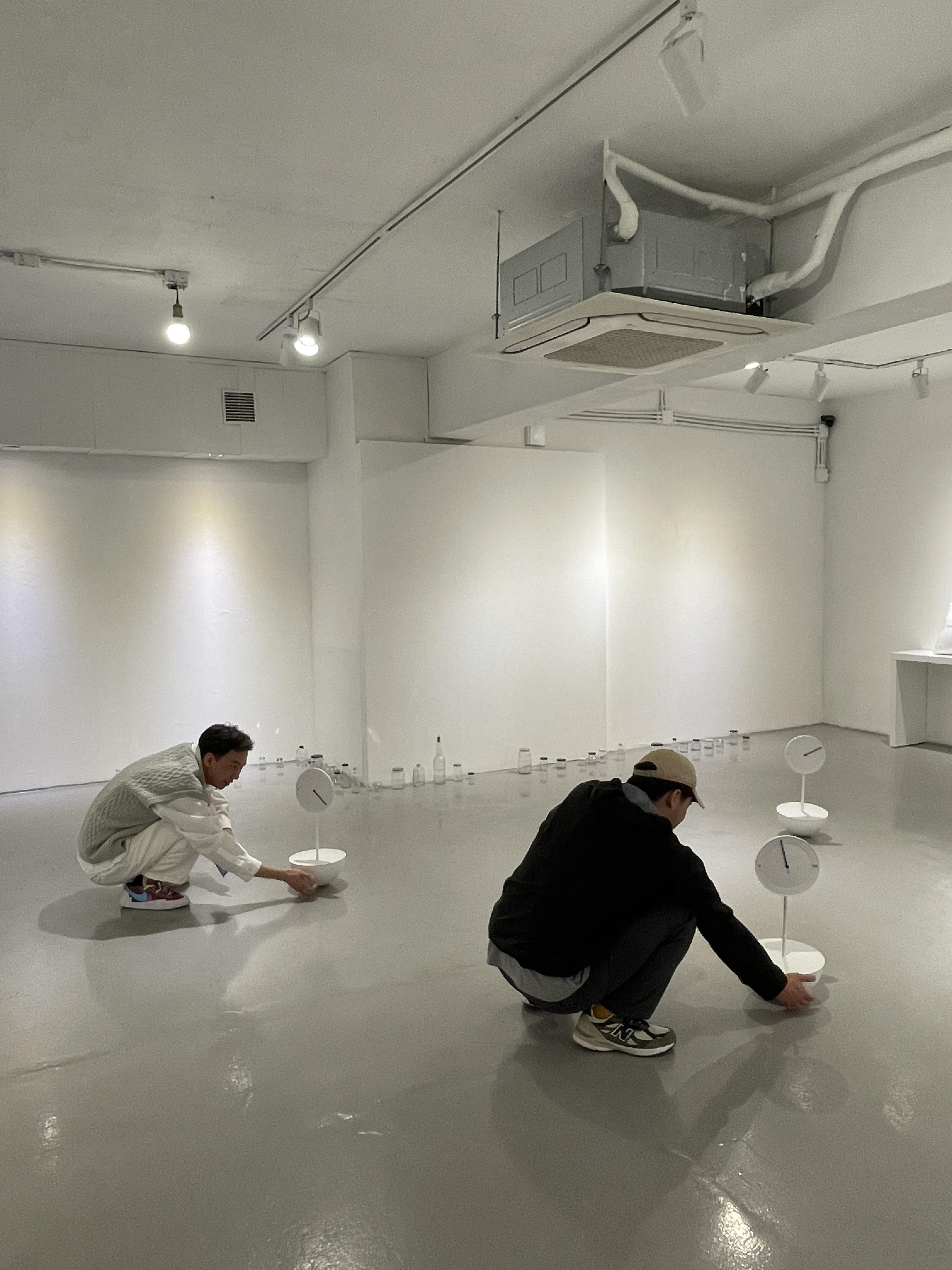 This installation combines the form of a roly-poly toy (Ottogi) with a clock to express the possibility of finding balance amid instability.
