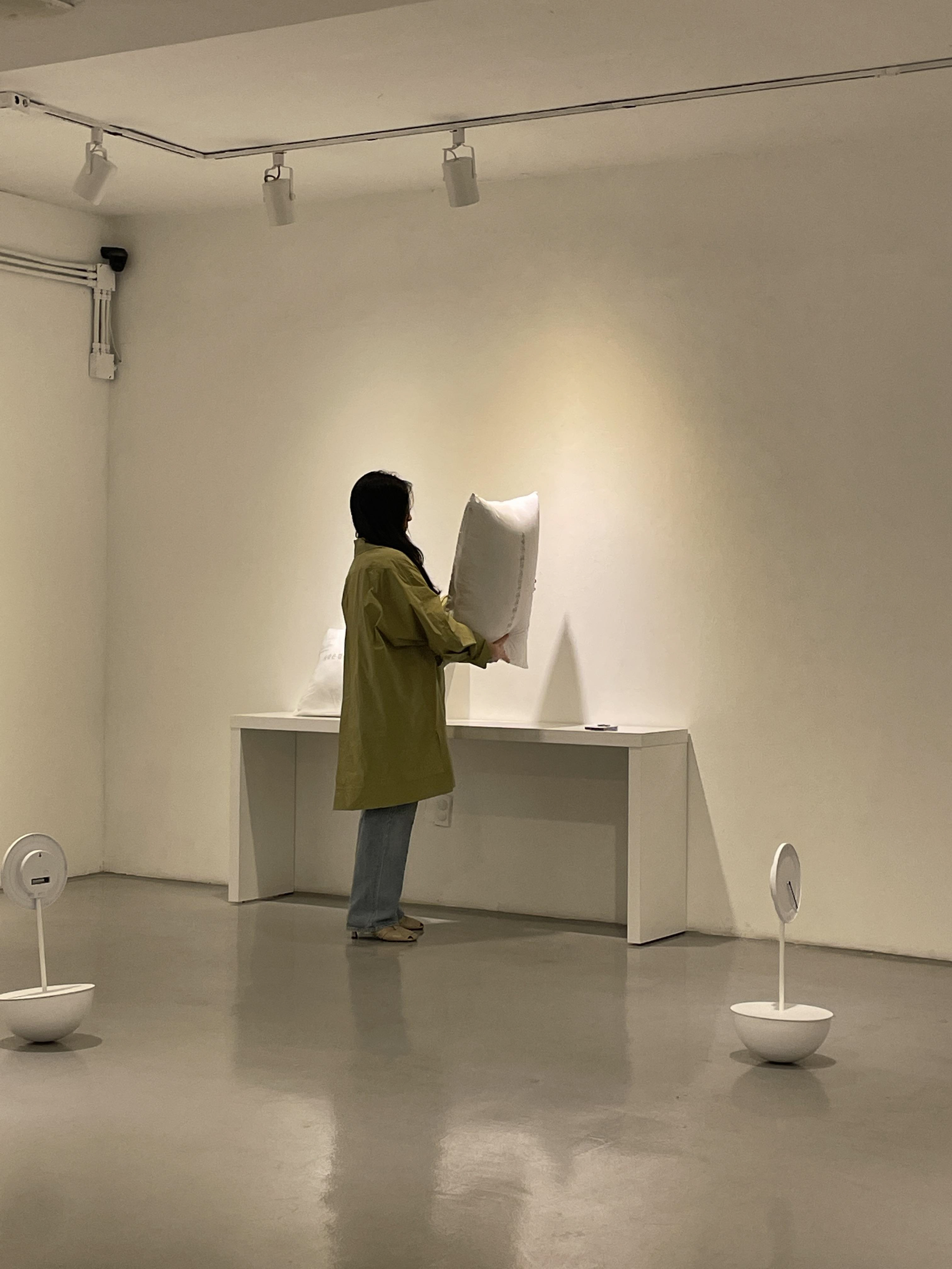 이 작업은 베개에 레터링이 되어있는 작품으로, 의심이 일상 속에서 만들어내는 균열에 대한 깊은 성찰을 담고 있다.